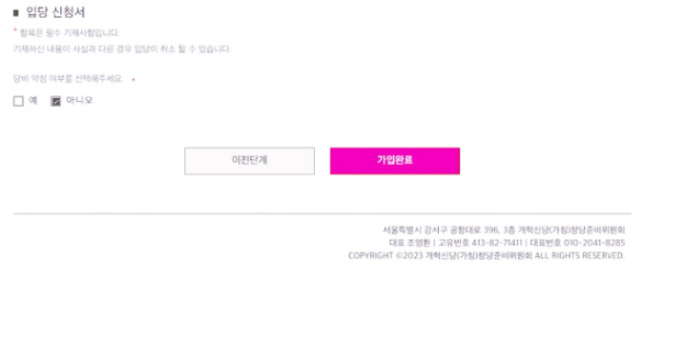 6. 당비 납부정보를 입력후 가입완료를 누르면 개혁신당 가입이 완료가 됩니다.