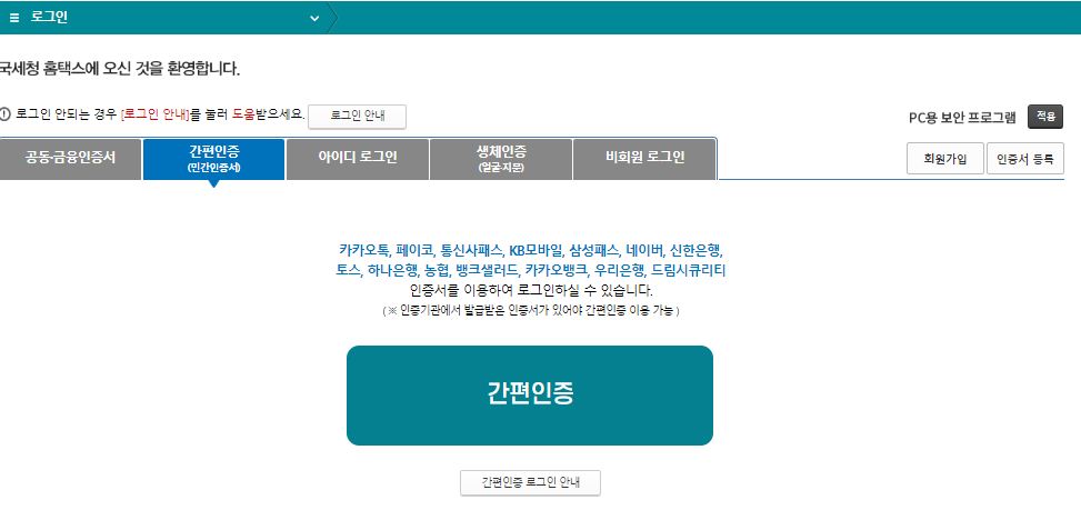 2️⃣ 금융인증서나 간편인증서를 클릭하고 로그인을 합니다.