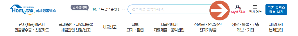 홈텍스➡로그인(간편인증 또는 금융인증서)➡My홈텍스➡연말정산◦지급명세서