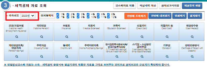 3. 귀속년도를 2023년으로 선택