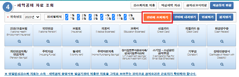 4. 각 자료를 한 번에 조회하기를 선택한 후 예상세액 계산을 진행