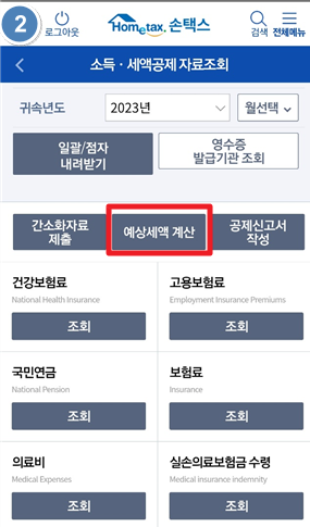 2. 예상세액 계산 실행