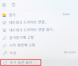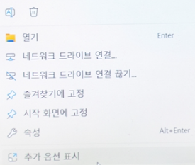 3. 바탕화면에서 내 컴퓨터를 우클릭하고, 윈도우 11에서는 추가 옵션 표시를 누른 후 '관리'를 선택합니다. 여기서 '디스크 관리' 항목을 클릭합니다.