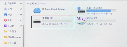 6. 이후 '마침'을 누르면 D드라이브가 새롭게 생성된 것을 확인할 수 있습니다.